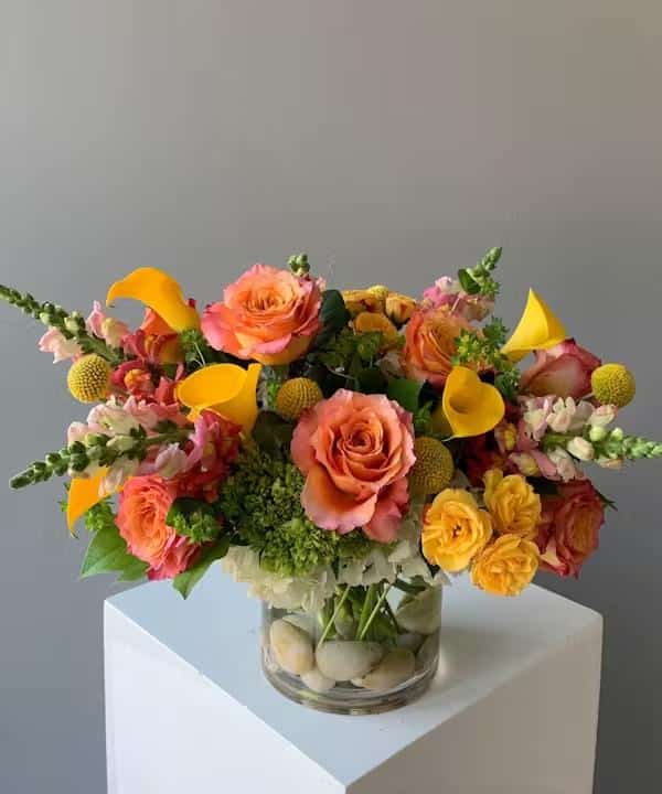 Occasionally, we may need to substitute certain flowers and containers due to availability challenges. However, rest assured, we’ll make every effort to uphold the essence and aesthetic of your chosen arrangement.